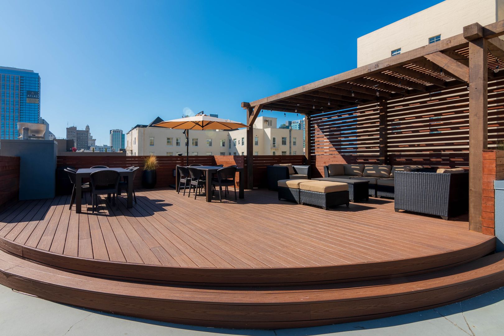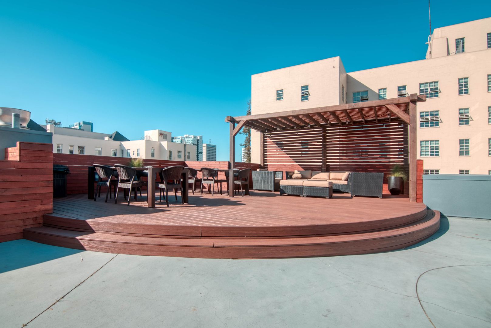 - Rooftop sun deck and BBQ area with city views