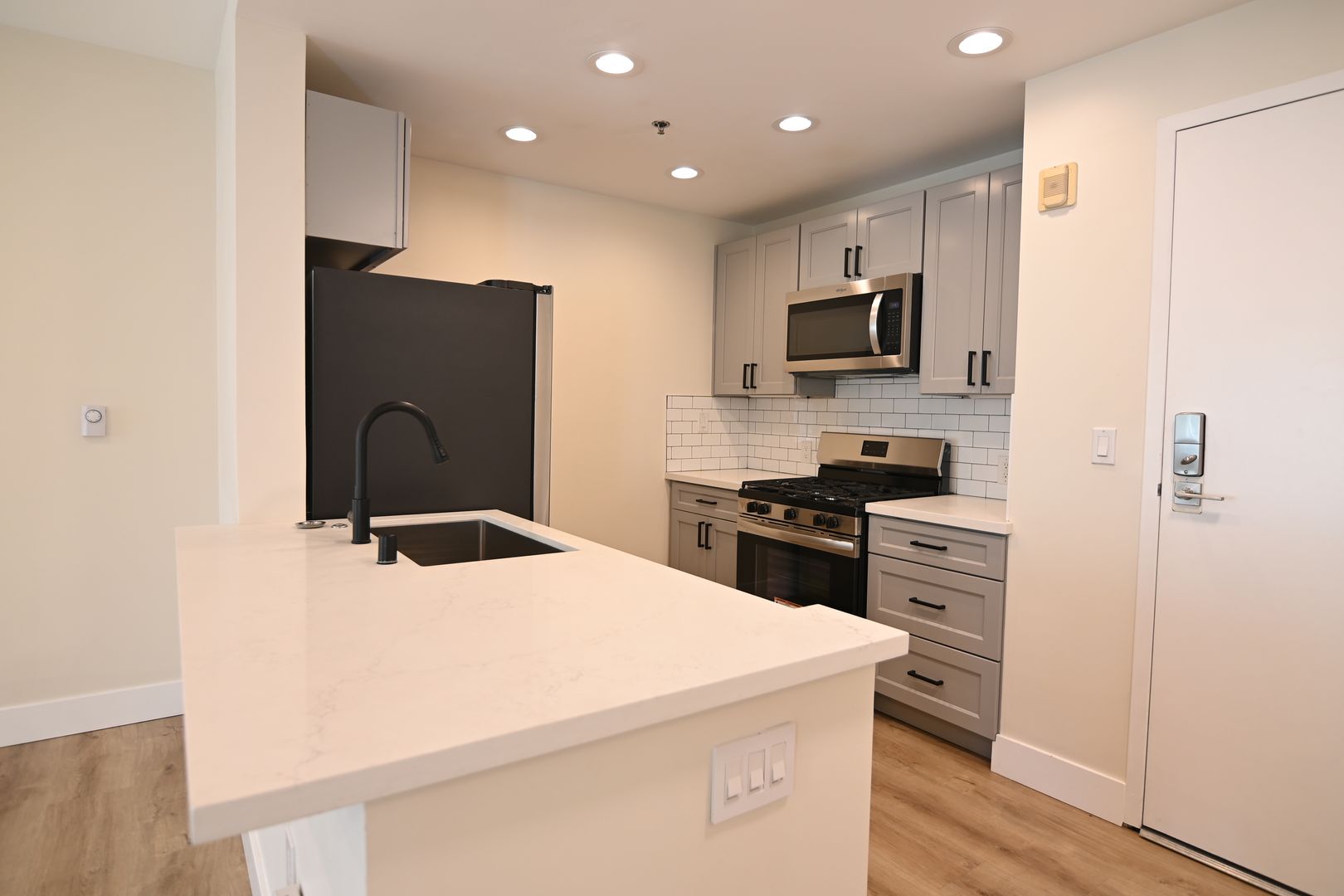 - Newly remodeled with high-end finishes - stainless steel fridge, range, microwave, dishwasher, new cabinets and countertops